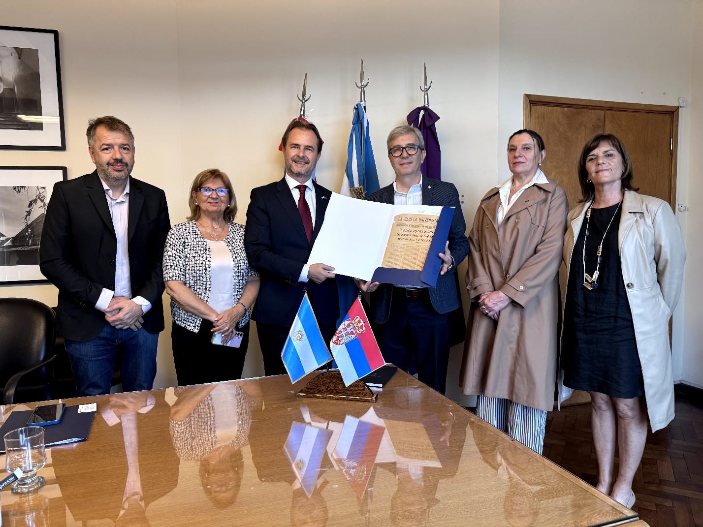 Амбасадор Вељко Лазић састао се 17. октобра 2025. године са Џоном Боретом, ректором Националног универзитета у Кордоби, најстаријег универзитета у Аргентини основаног 1613. године.